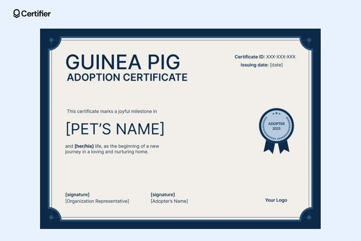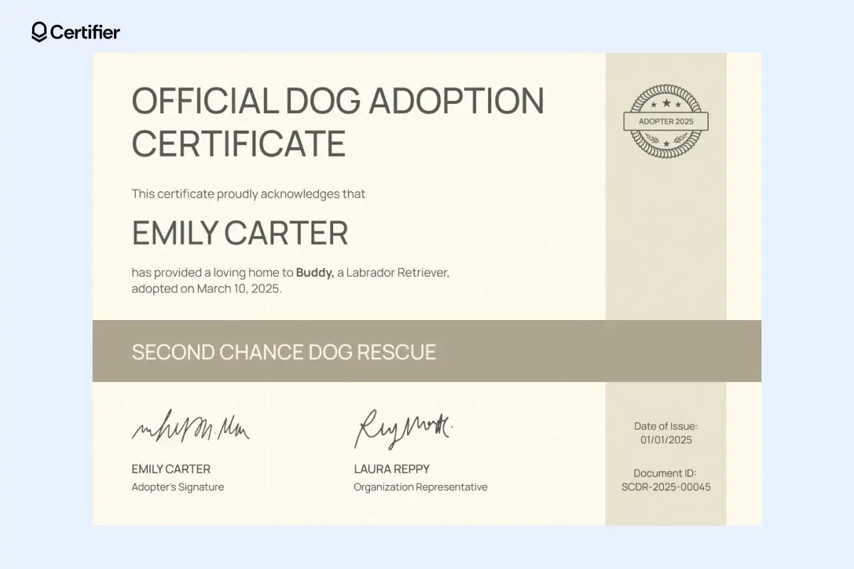 Ideal for generating a pet adoption certificate template PDF that’s easy to store and share