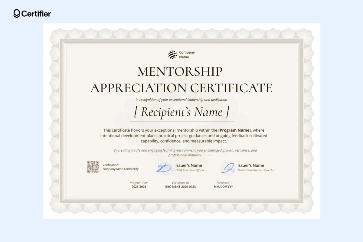 #7 Mentorship appreciation certificate template for formal mentoring programs