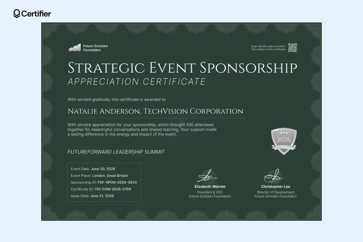 #1 Strategic event sponsorship certificate template for leadership summit partners