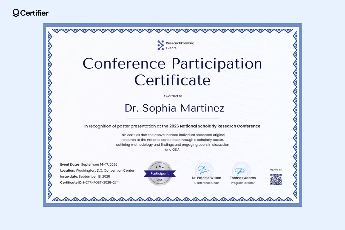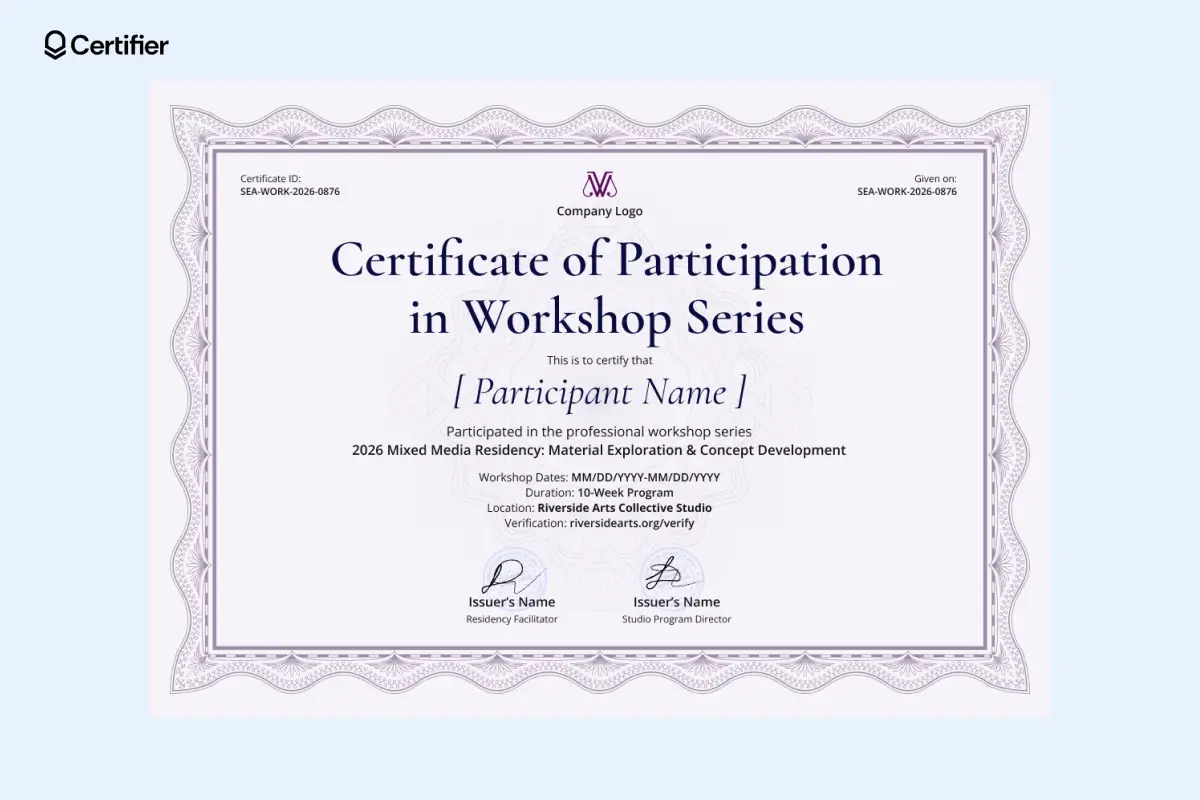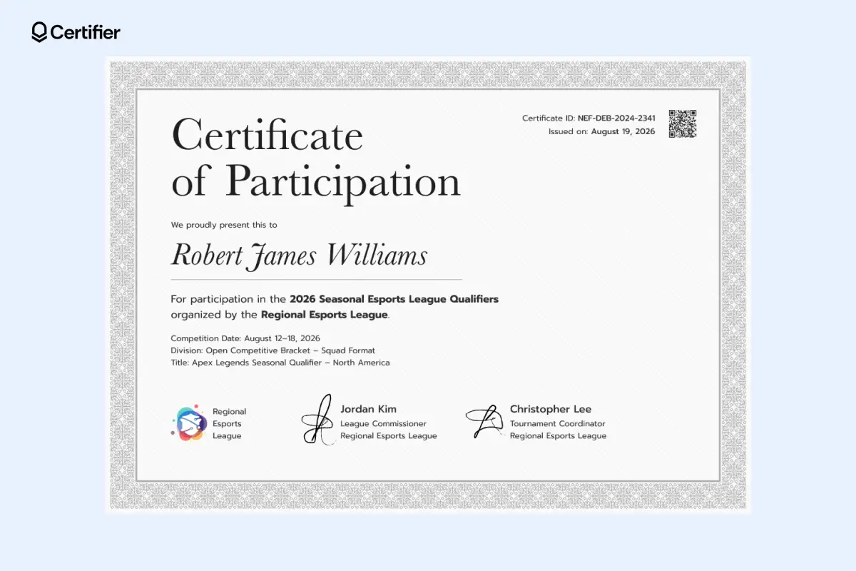 Below are the certificate of participation templates you'll find within Certifier. Feel free to use them!