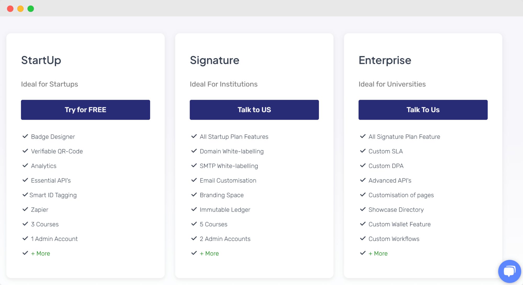 CertifyMe offers 3 plans: Startup, Signature, and Enterprise. CertifyMe no longer provides transparent prices. Now, you will have to ask for a quote to find out how much CertifyMe costs.