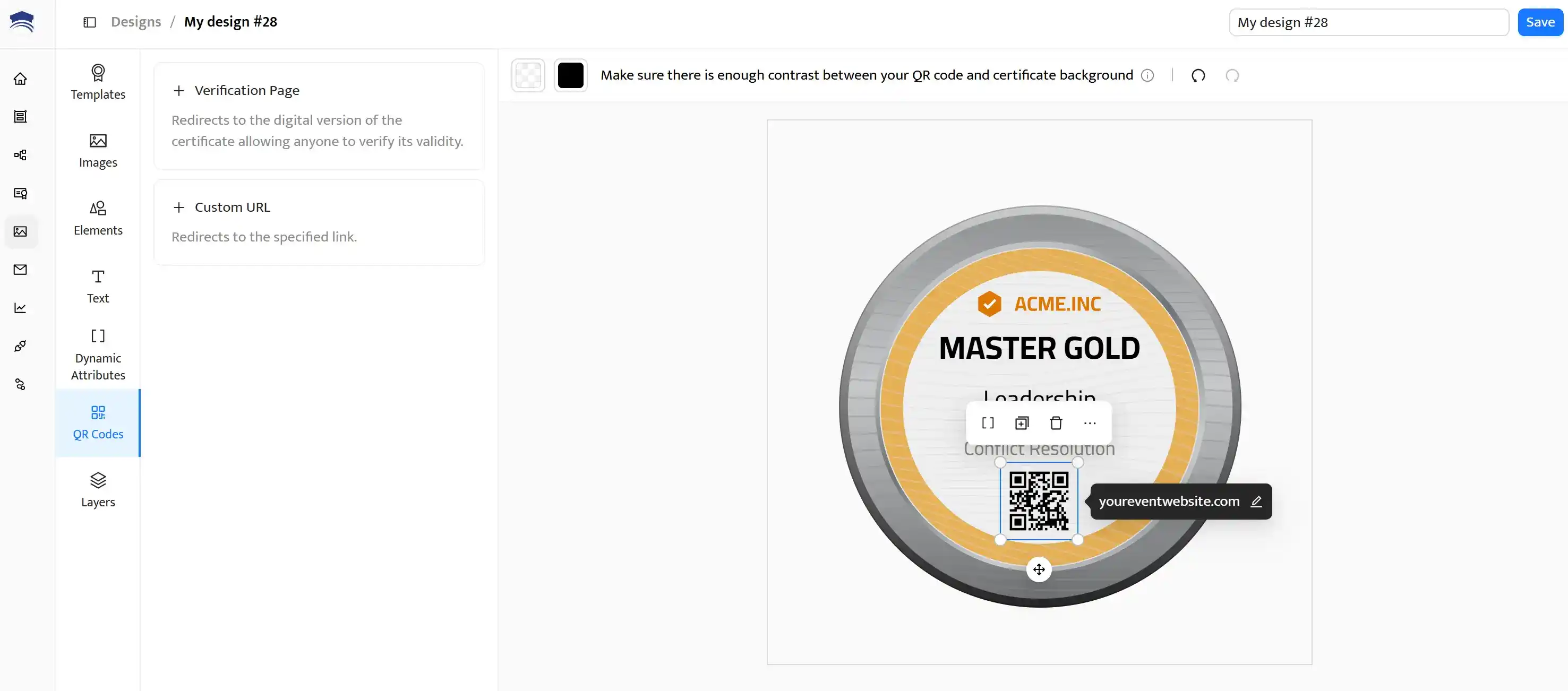 To simplify badge access during live events, include a QR code linking to each digital badge. Attendees can scan to show credentials or check in—no paper or plastic needed, making your setup an eco-friendly event badge system.