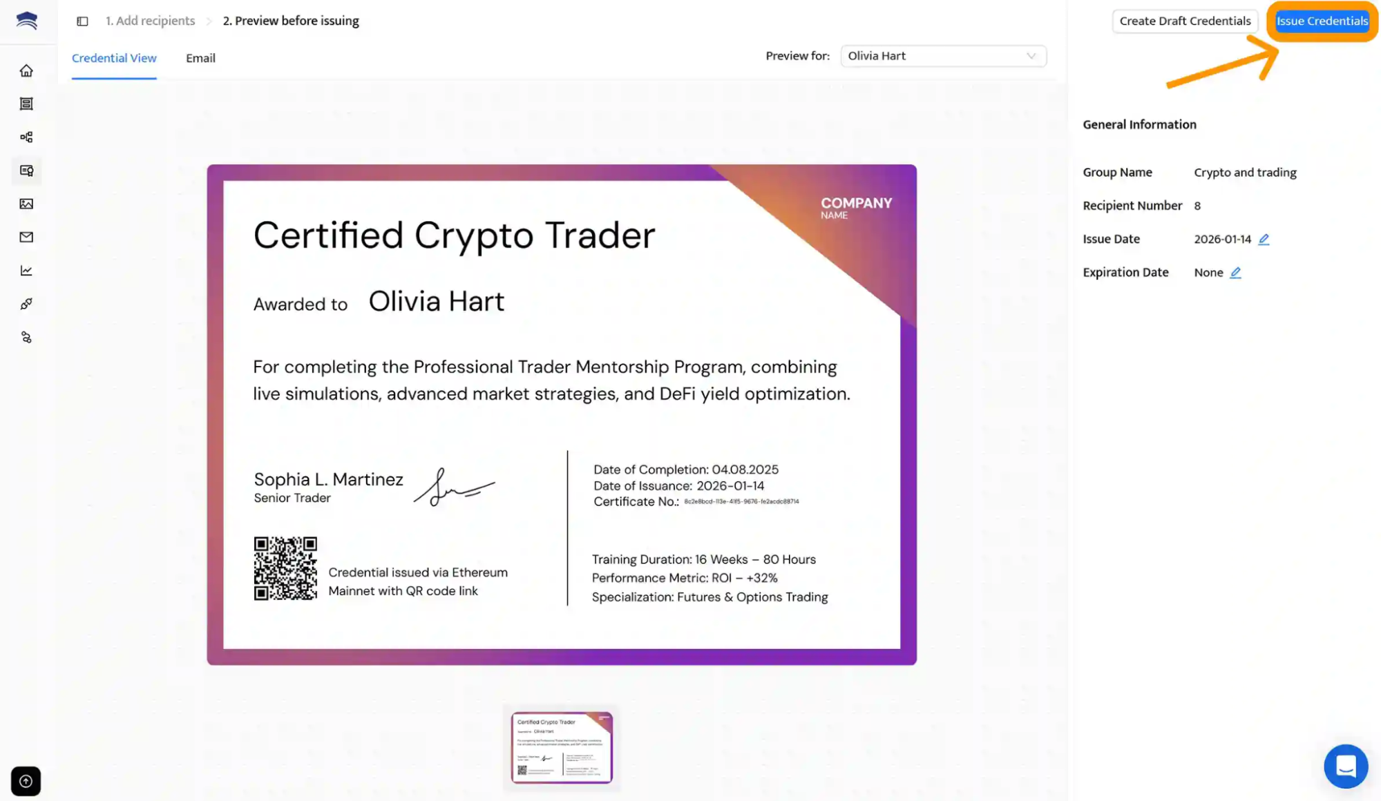 Built-in analytics and visibility: Certifier tracks issued credentials, including views, downloads and shares. This data helps you understand engagement and improve how certificates support your learning or marketing goals.