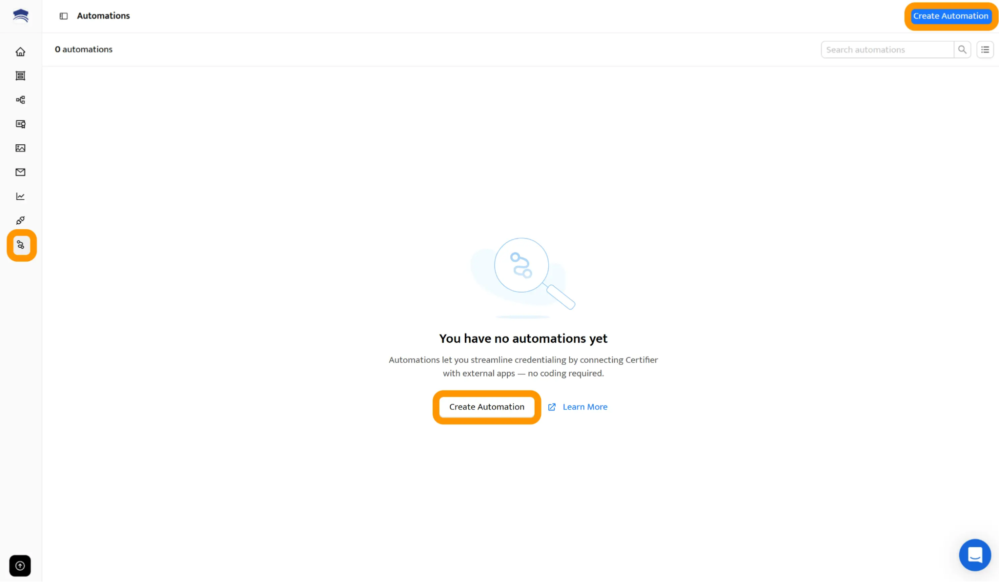 To set either one up, create a Certifier account. Then go to Automations in Certifier and create a new automation.