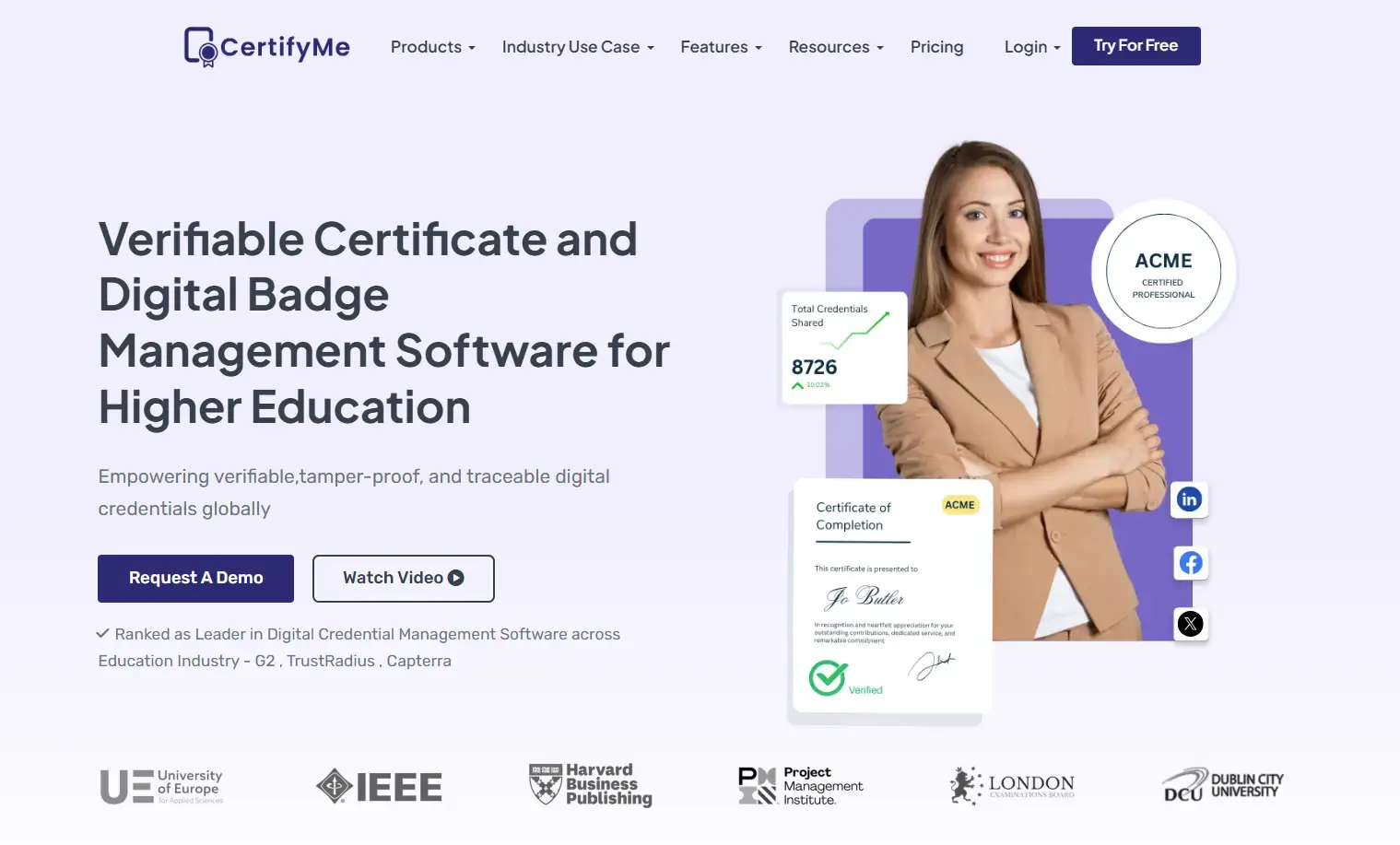 CertifyMe focuses on digital badges and learner validation. It’s often used in education and certification programs.