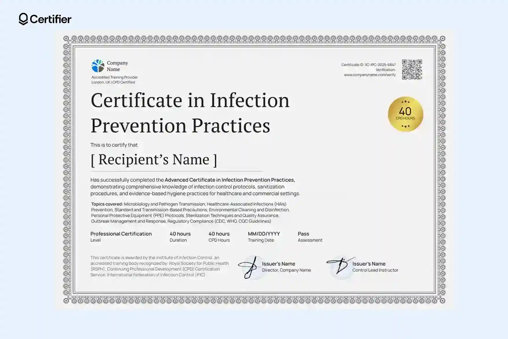 Some sanitization training certificate templates are issued after forms, sessions or inspections. Automated workflows in Certifier connect those moments directly to certificate creation. Proof appears exactly when the work is finished.