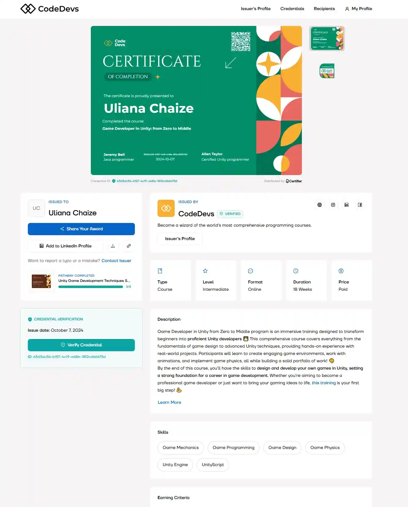 Make credentials verifiable with digital features like QR codes so learners can easily share achievements with employers