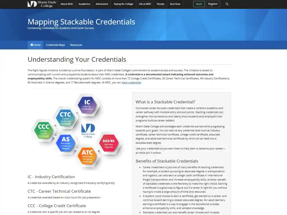 Community colleges play a major role here. Schools such as Miami Dade College and many institutions across several states use stackable certificates to help students build momentum, especially those returning to college after time in the workforce.