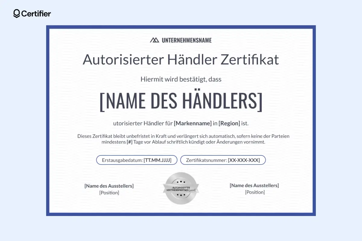 Sie vergeben exklusive Vertriebsrechte? Dann brauchen Sie ein autorisierter Händler Zertifikat, das unmissverständlich und rechtssicher formuliert ist.