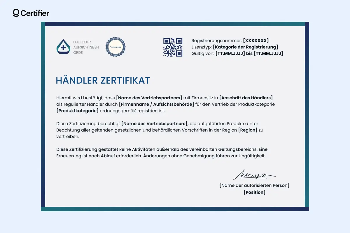 Damit sichern Sie die formale und rechtliche Gültigkeit Ihrer Händlerzertifikate – und steigern das Vertrauen auf allen Seiten.