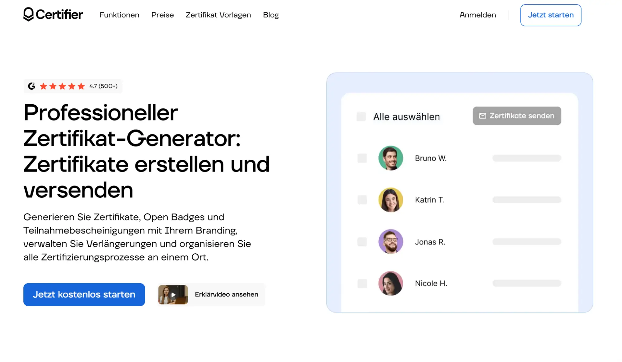Ein besonders leistungsstarkes Tool ist Certifier – die Plattform bietet eine Vielzahl an Funktionen für ein reibungsloses, professionelles Zertifizierungsverfahren.