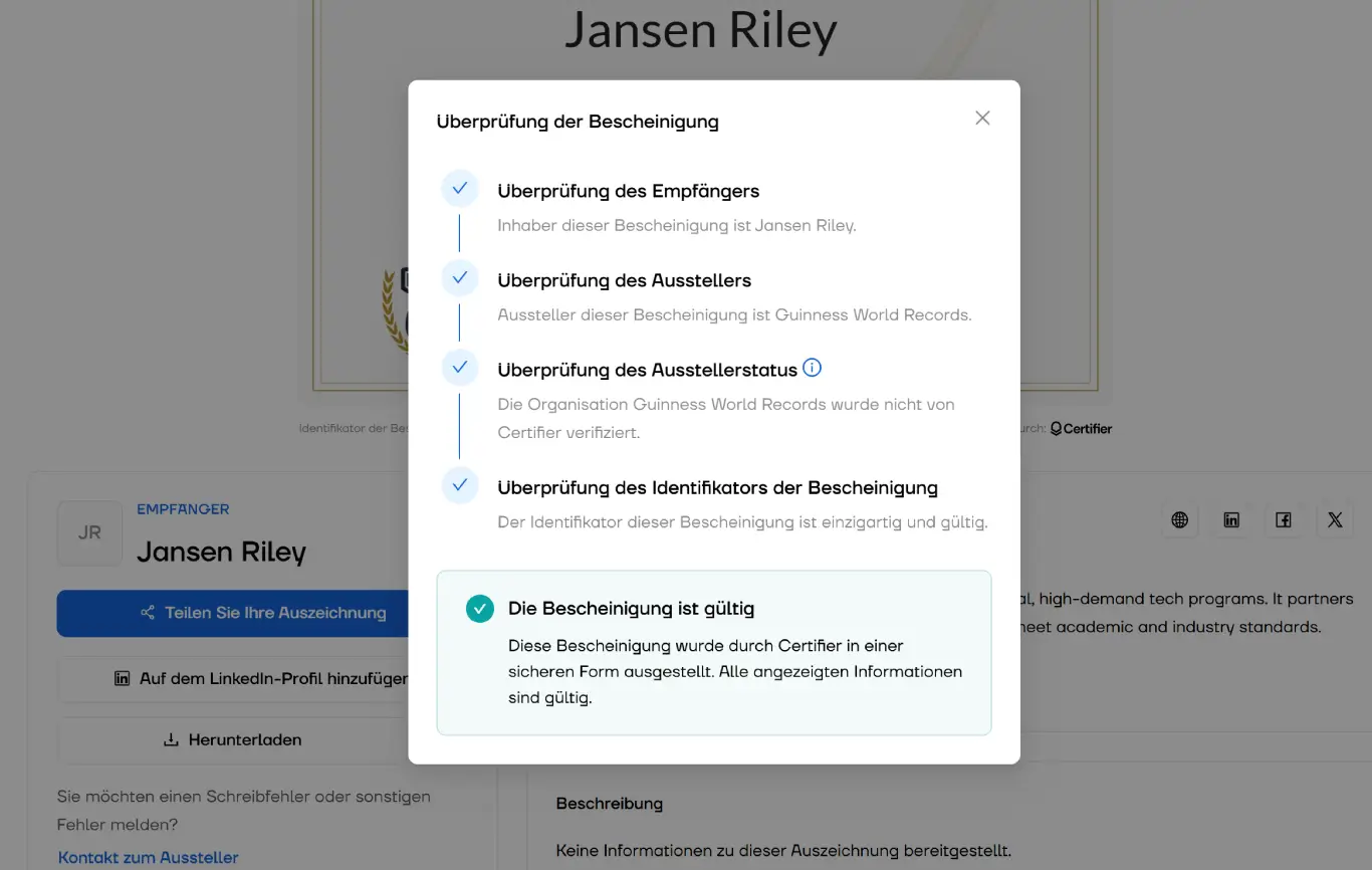 Einfache Verifizierung von Zertifikaten durch Arbeitgeber oder Bildungspartner