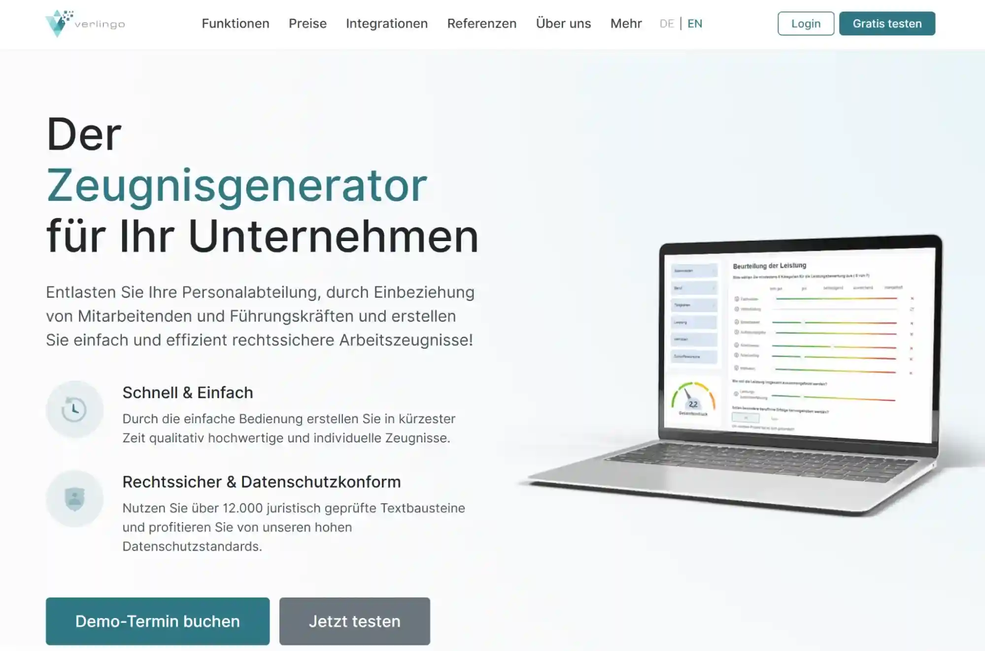 Verlingo ist ein spezialisiertes deutsches Tool zur Erstellung von Arbeitszeugnissen und HR-Zertifikaten, das sich an Unternehmen, Kliniken und öffentliche Einrichtungen richtet.