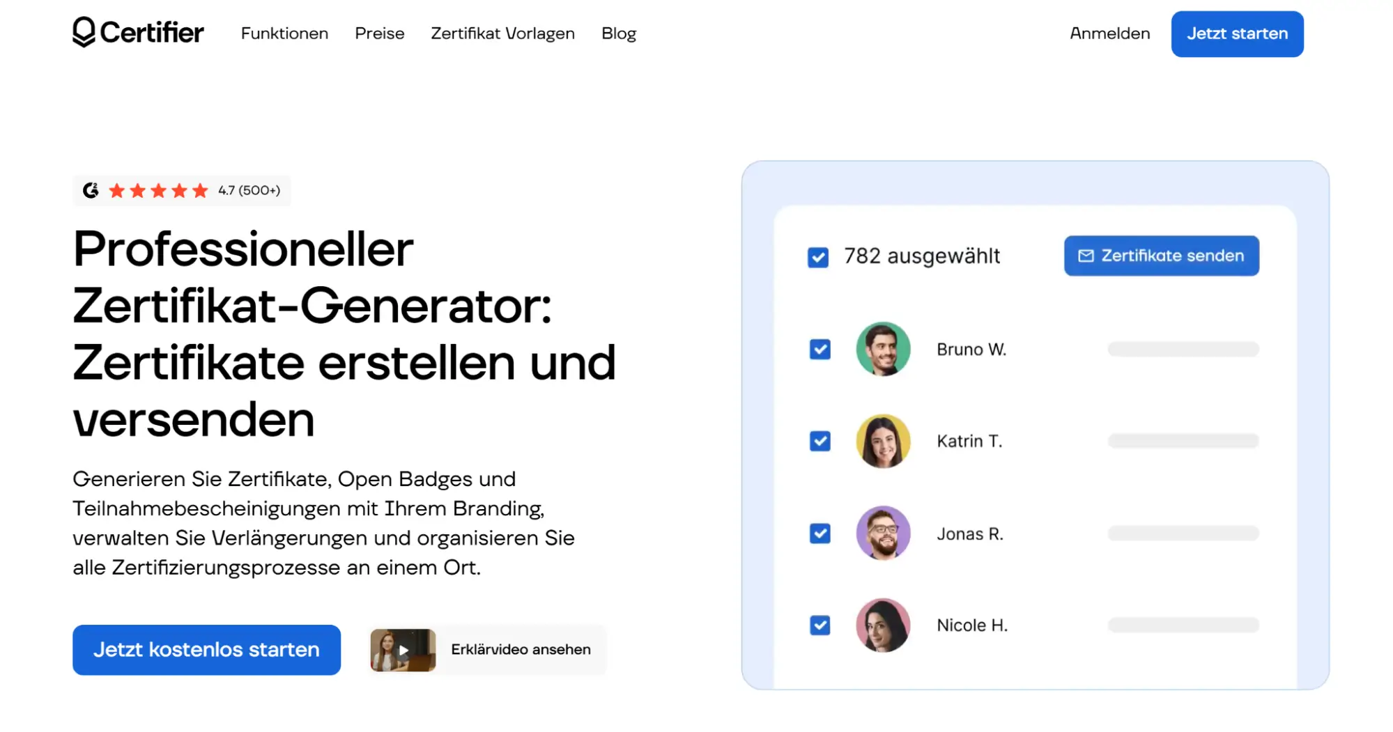 Funktionen wie Massenversand, dynamische QR-Codes und automatische Verlängerung sind bei Certifier standardmäßig enthalten.