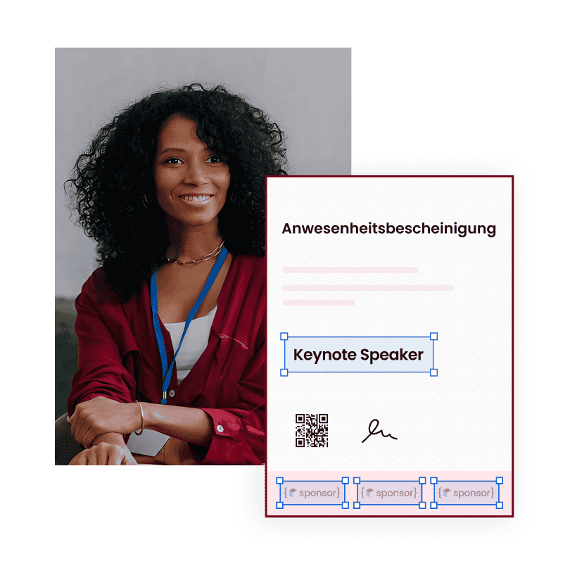 Belohnen Sie Teilnehmende, Organisatoren und Keynote-Speaker mit Zertifikaten, die sie gerne teilen. Steigern Sie die Sichtbarkeit Ihres Events, fördern Sie neue Anmeldungen und halten Sie Sponsor-Branding präsent.