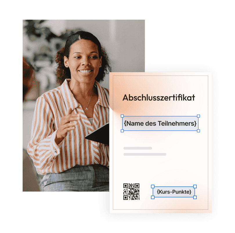 Steigern Sie den Wert Ihrer Online-Kurse mit gebrandeten, verifizierbaren Zertifikaten. Sie motivieren Teilnehmende zum Abschluss, fördern weitere Kurse und bringen neue Anmeldungen.