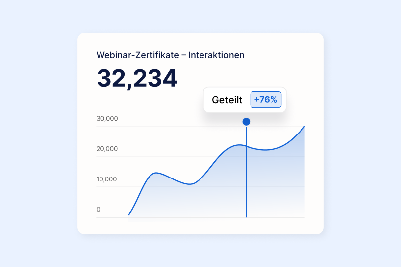 Verfolgen Sie Öffnungen, Downloads und Shares von Zertifikaten, um zu sehen, welche Webinar-Sessions besonders gut ankommen. Nutzen Sie Echtzeit-Analysen, um Wirkung zu messen, mit aktiven Teilnehmenden nachzufassen und Ihre Webinarstrategie zu optimieren.