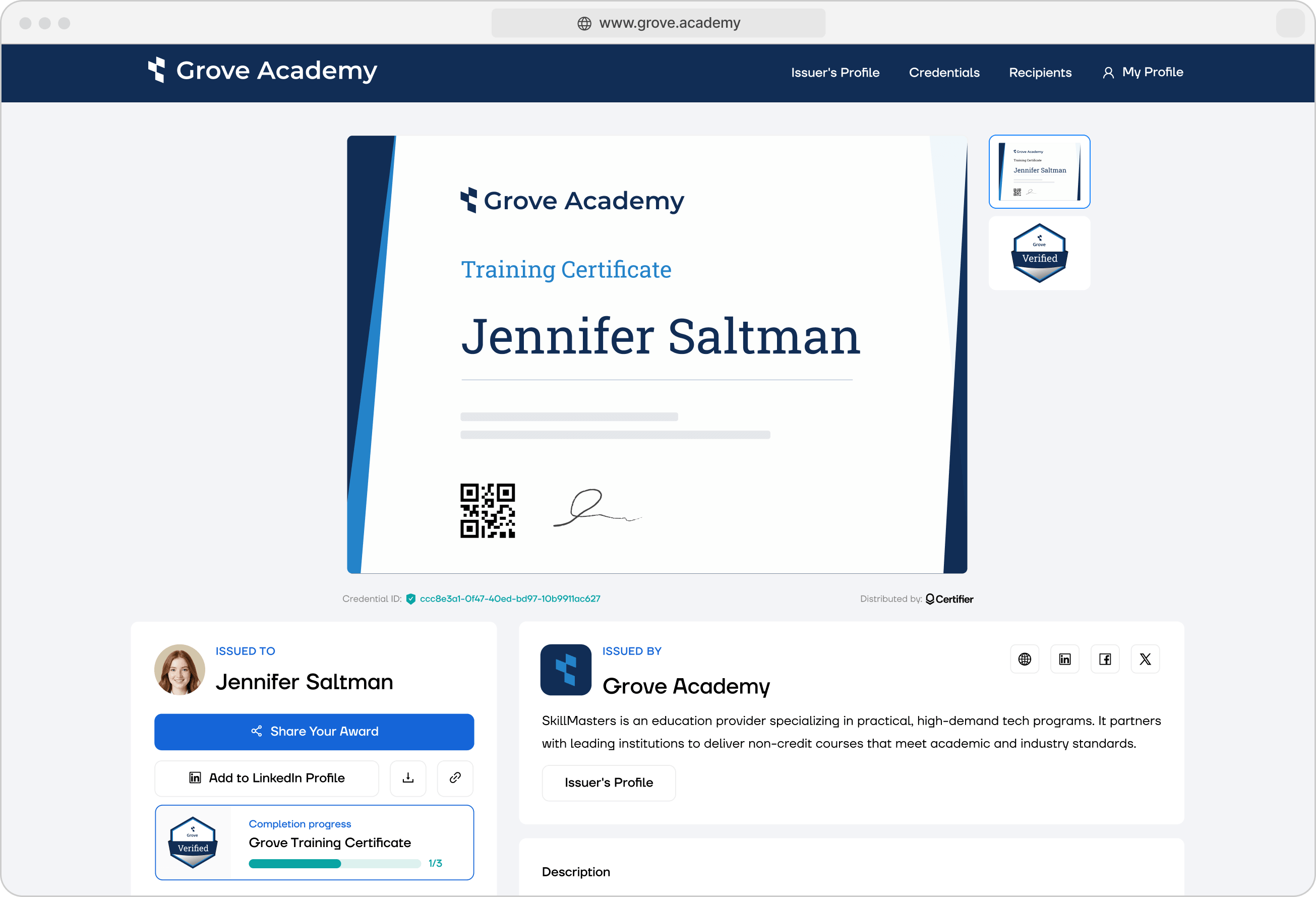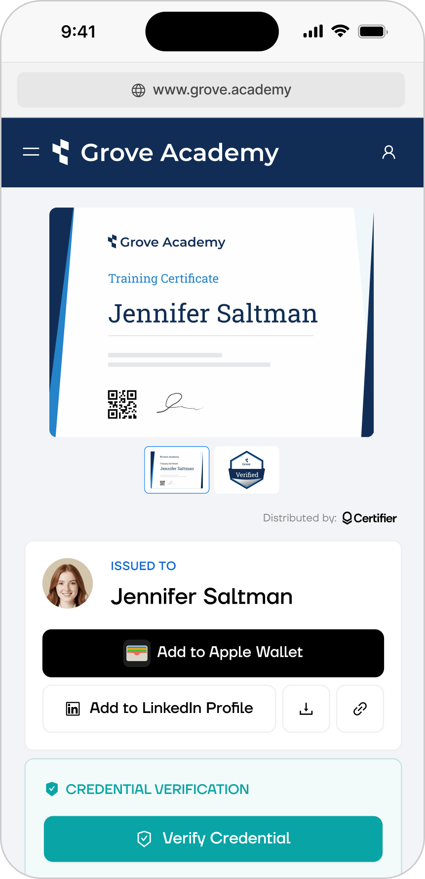 Click through to see how your credential looks, verifies, and shares.