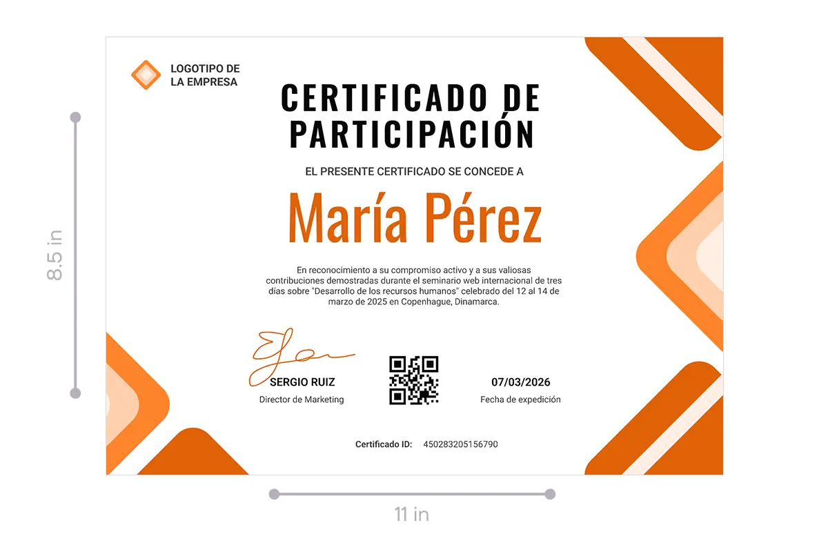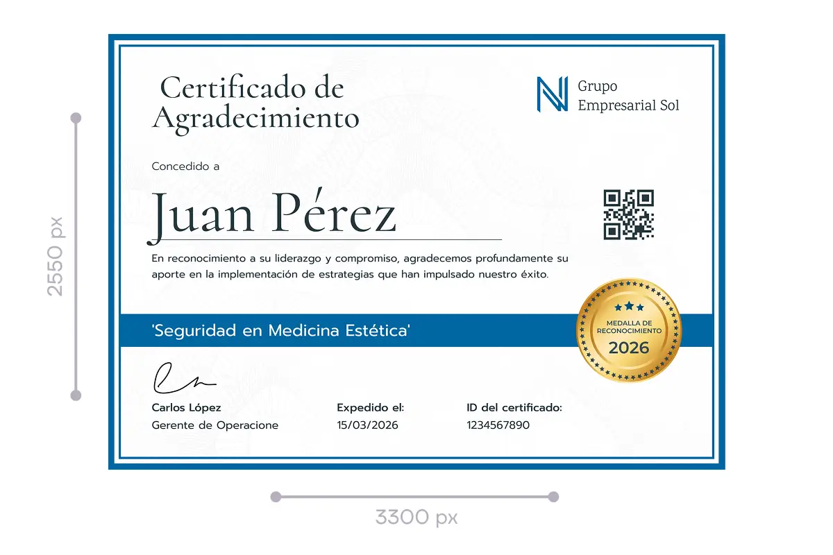 Si eliges correctamente el tamaño de certificado digital según el canal de entrega, te asegurarás de que el diseño sea claro, con imágenes nítidas y texto legible en cualquier formato.