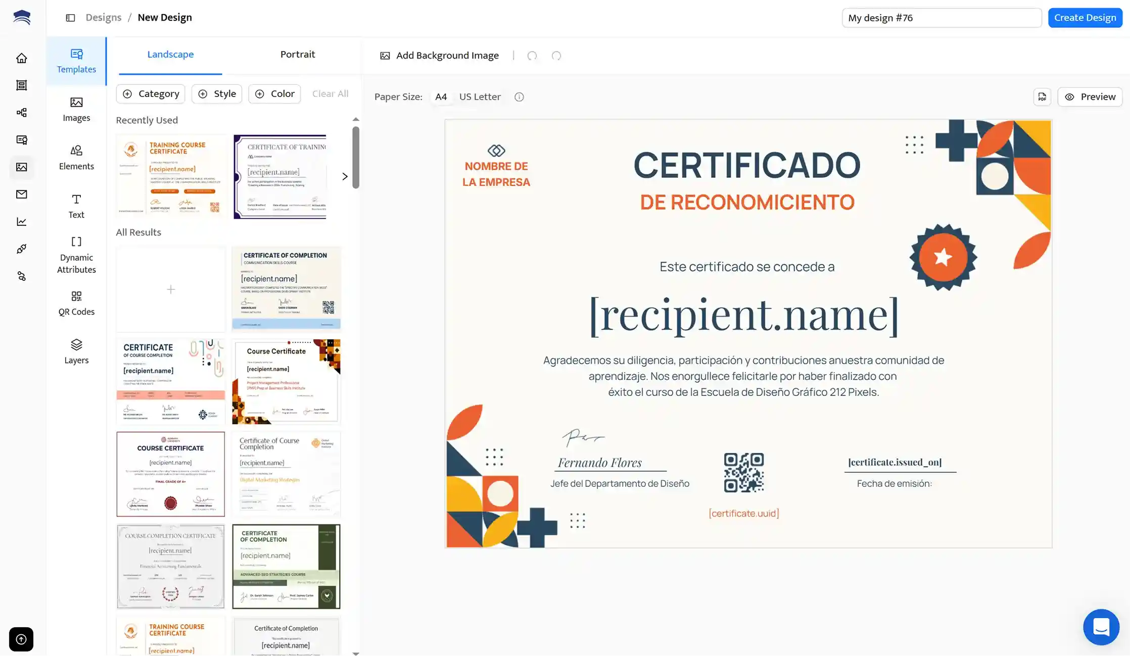 Otro factor clave que debes considerar es la cantidad de información que incluirás en el certificado. Todo se trata de encontrar la configuración perfecta. ¿Tu certificado tendrá mucho texto? ¿Vas a añadir elementos gráficos o códigos QR para la verificación del certificado digital?