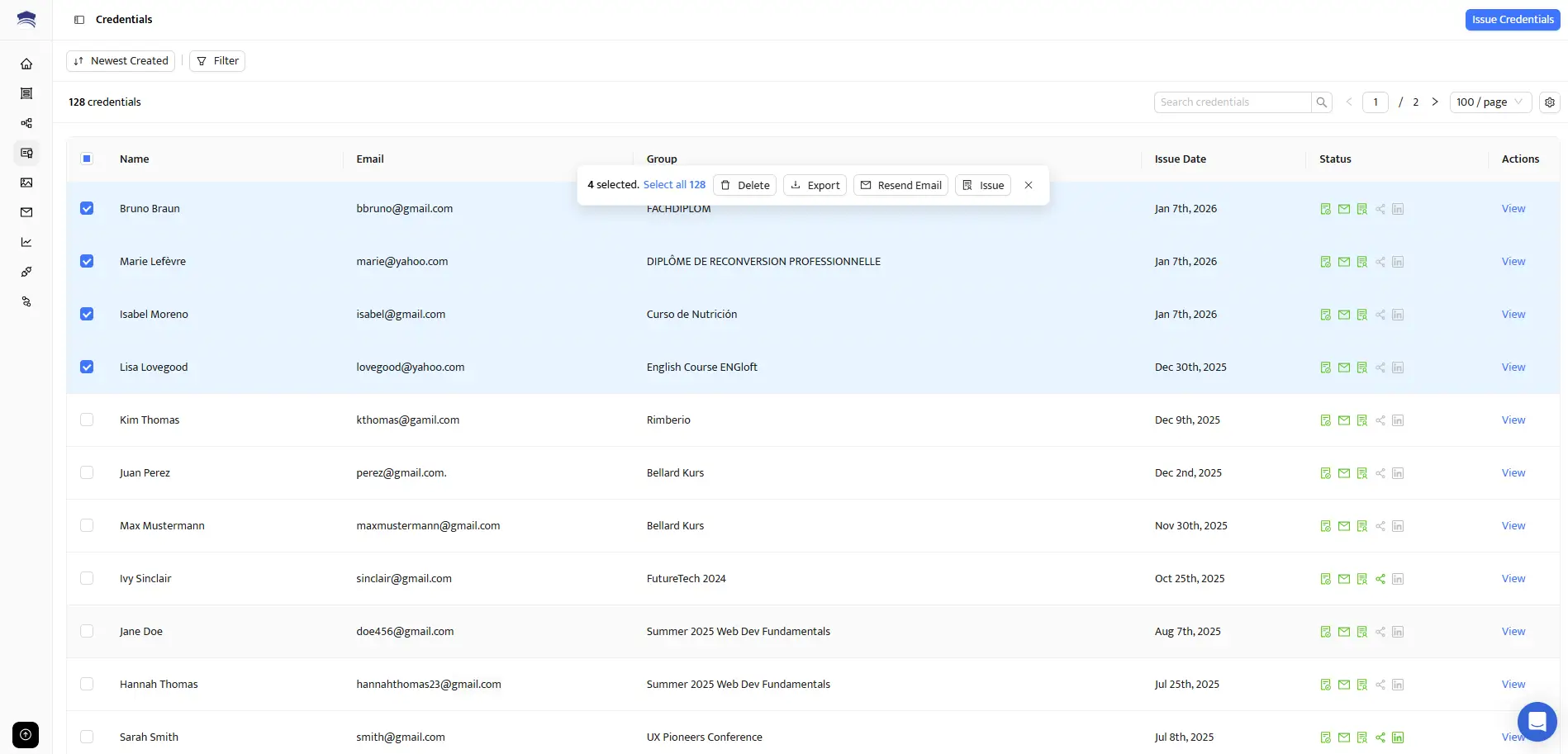 Si vous avez une longue liste de participant·e·s, créer des certificats manuellement peut vite devenir chronophage. Avec Certifier, vous pouvez facilement envoyer des certificats numériques en masse.