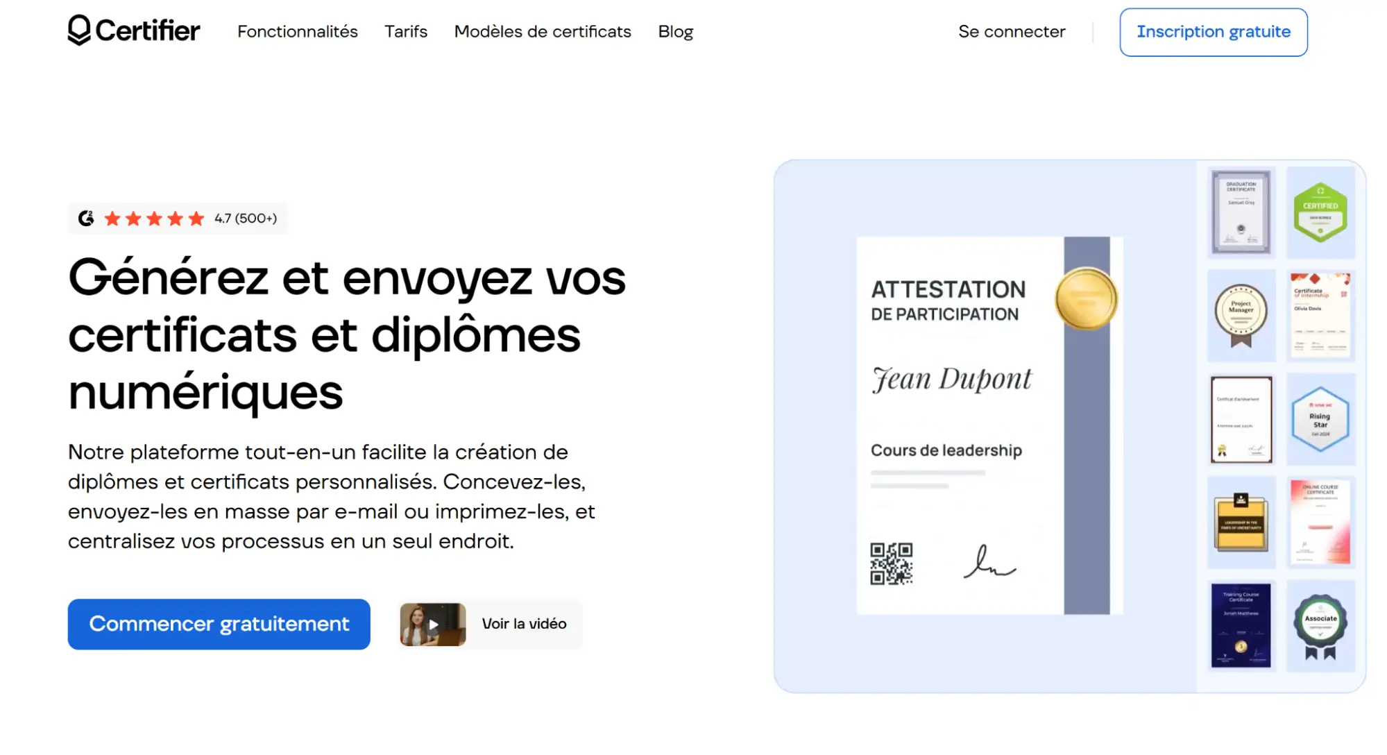 Inscrivez-vous gratuitement sur Certifier et commencez à créer des certifications numériques professionnelles et engageantes pour vos participant.