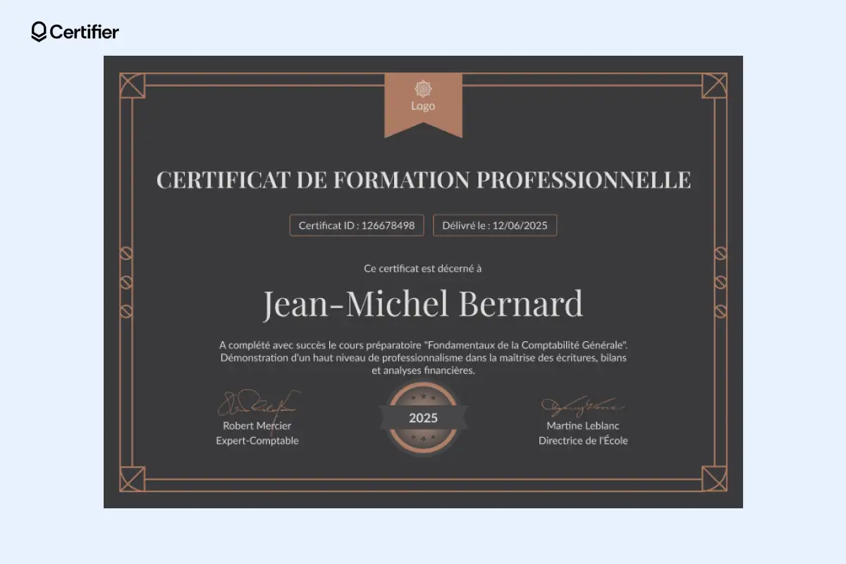 Découvrez comment créer un certificat de formation en quelques étapes simples, sans compétences en design. Rapide, facile et entièrement personnalisable.