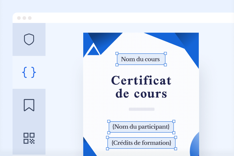 Créez un modèle de certificat de cours avec champs dynamiques. Certifier remplit automatiquement les informations pour chaque apprenant.