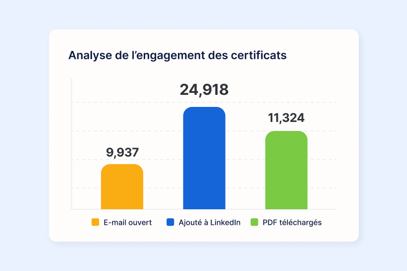 Identifiez qui ouvre, télécharge ou partage ses certificats. Exploitez ces données pour renforcer l’engagement et améliorer la rétention.